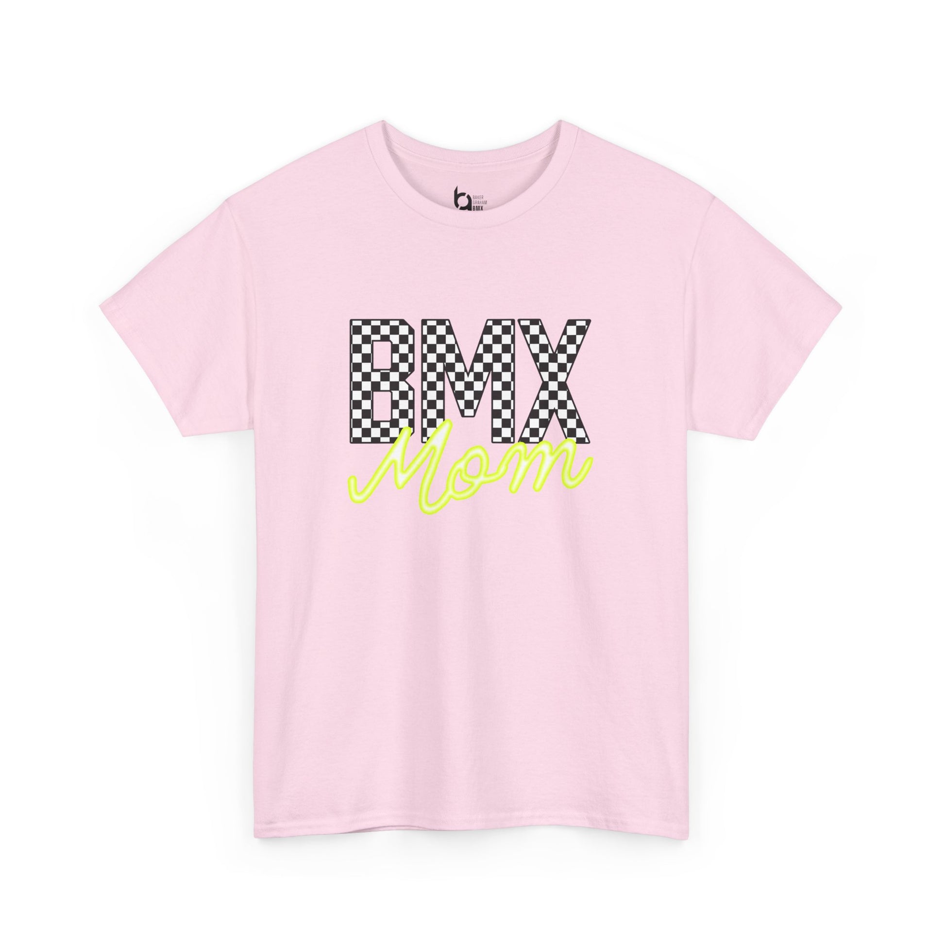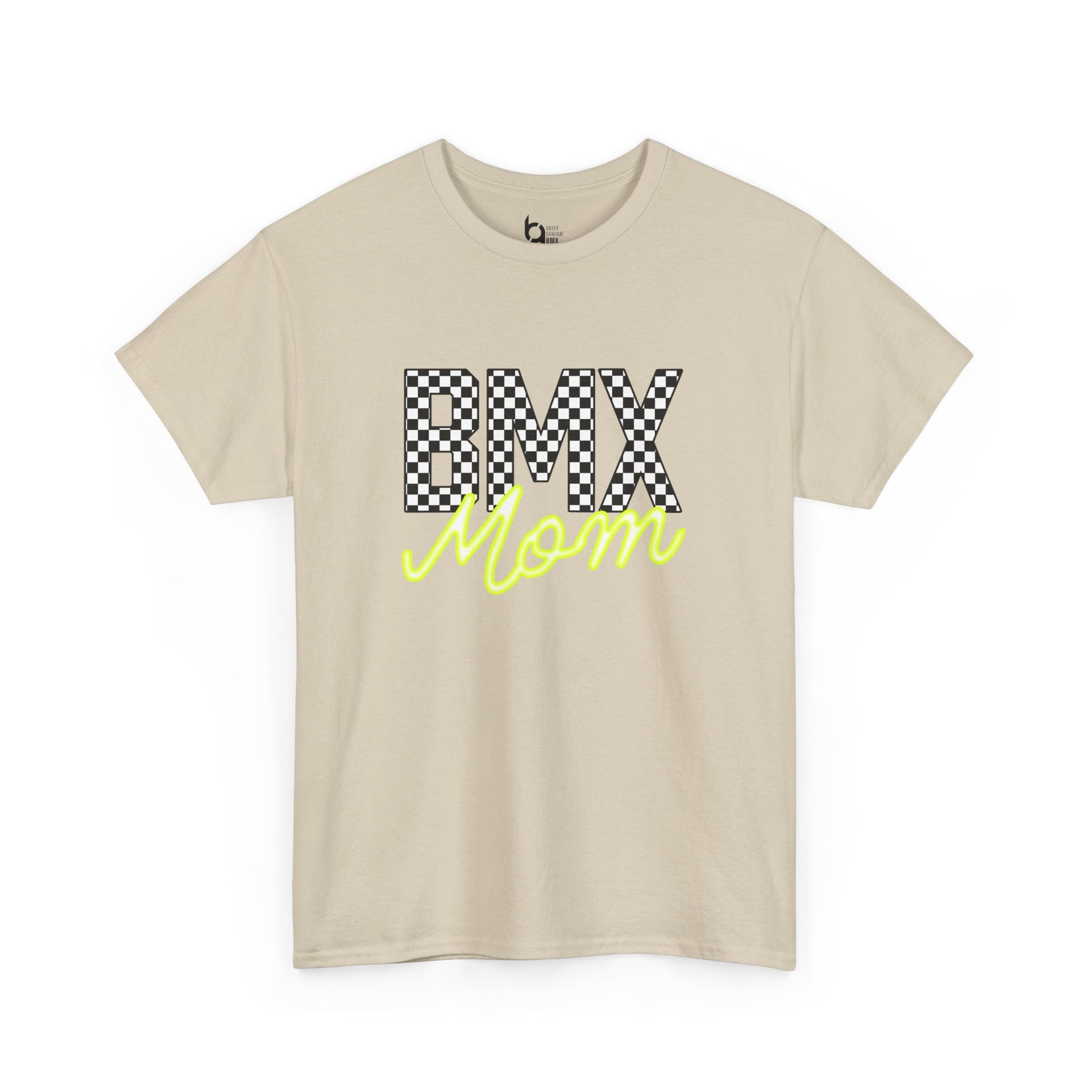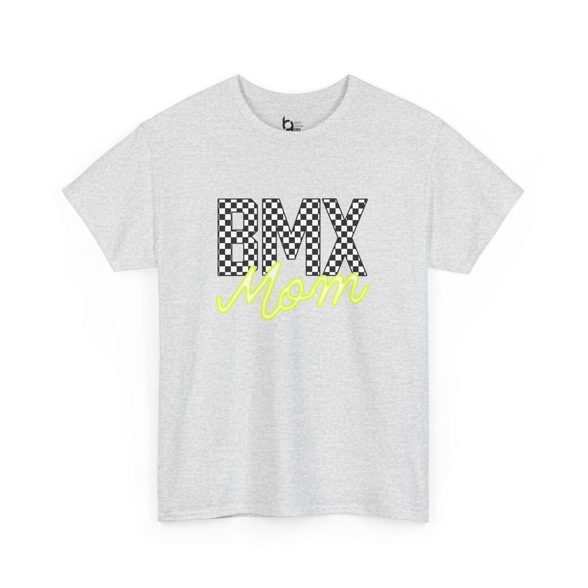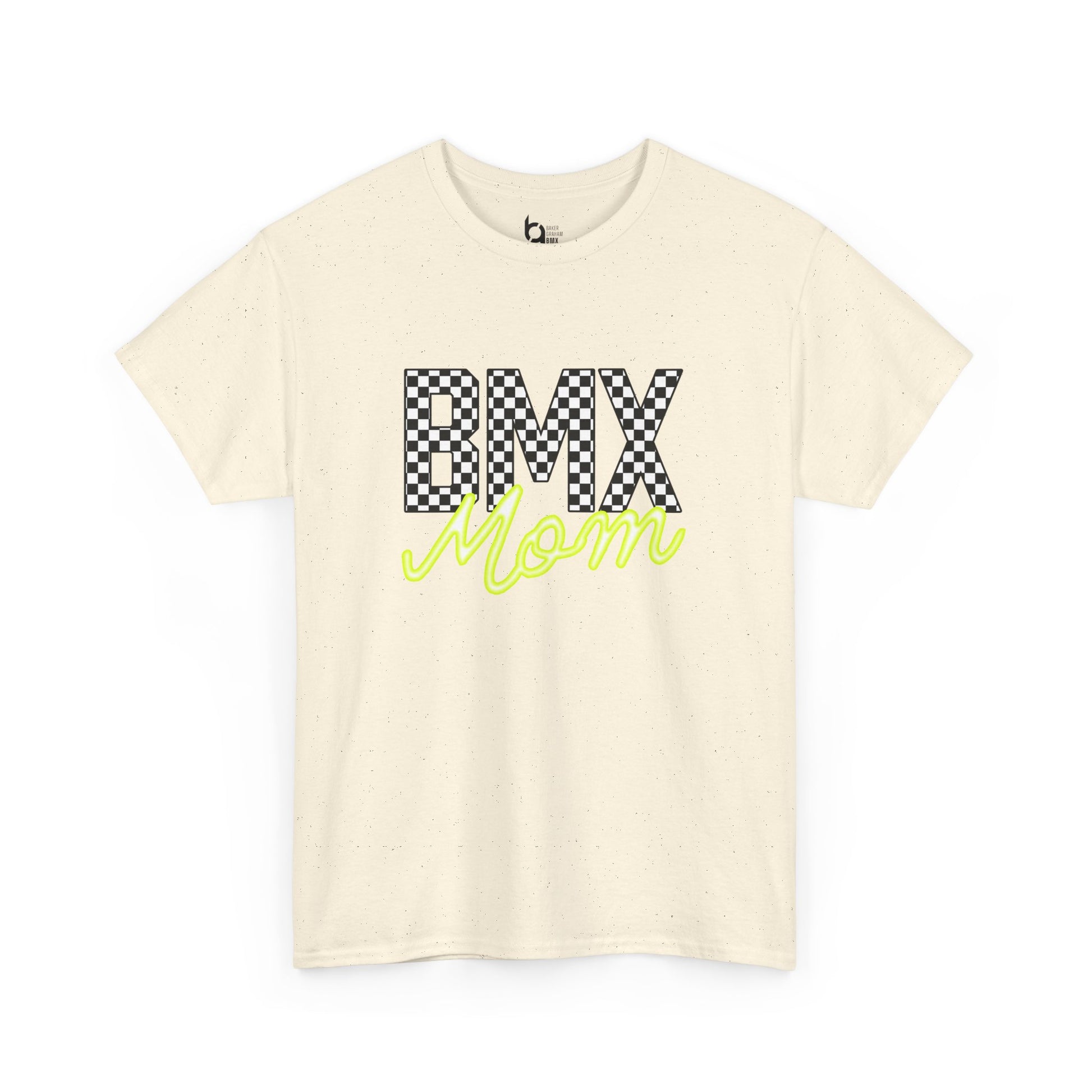 Checkered BMX Mom Light Colored Tee - Chartreuse Lettering