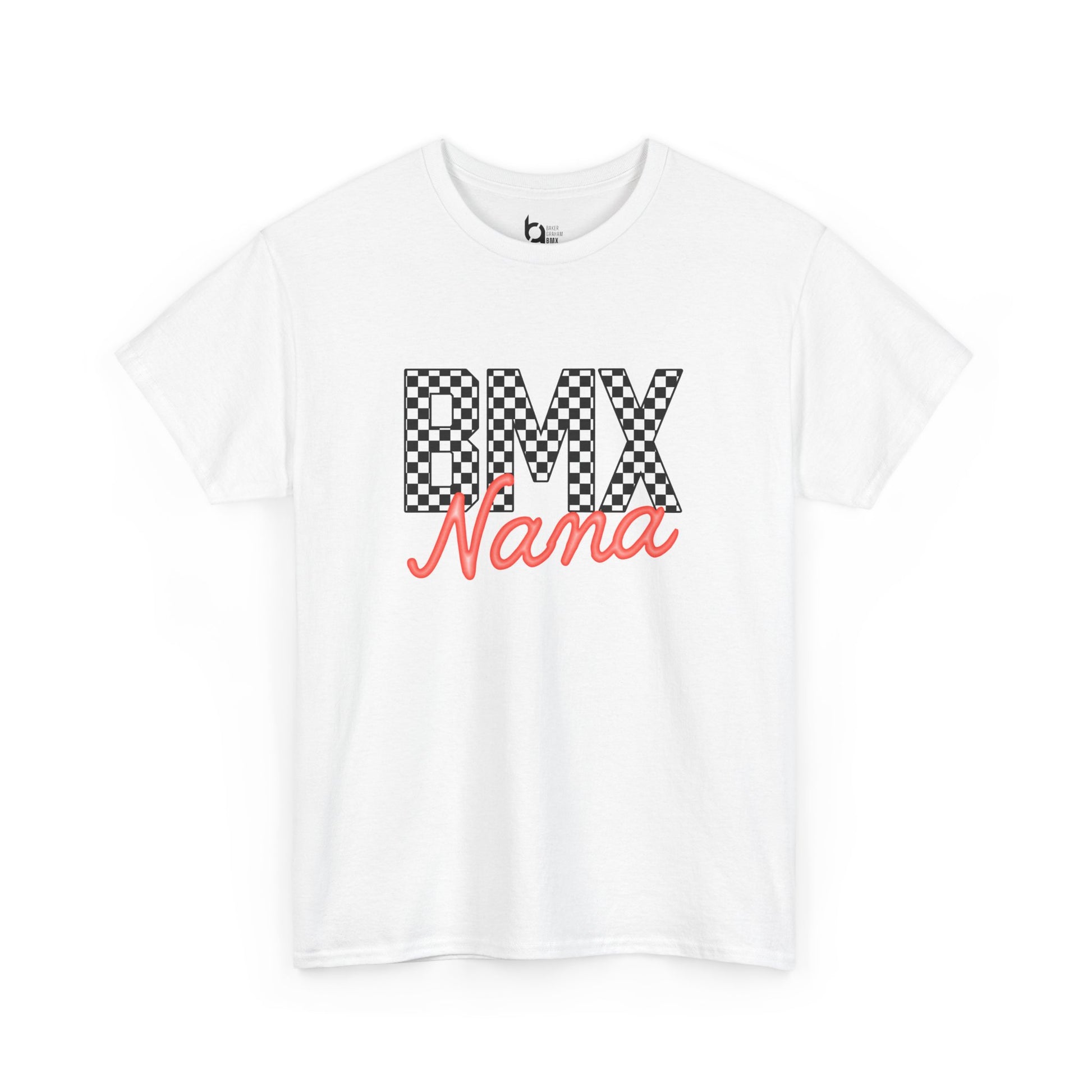 Checkered BMX Nana Light Colored Tee - Red Lettering