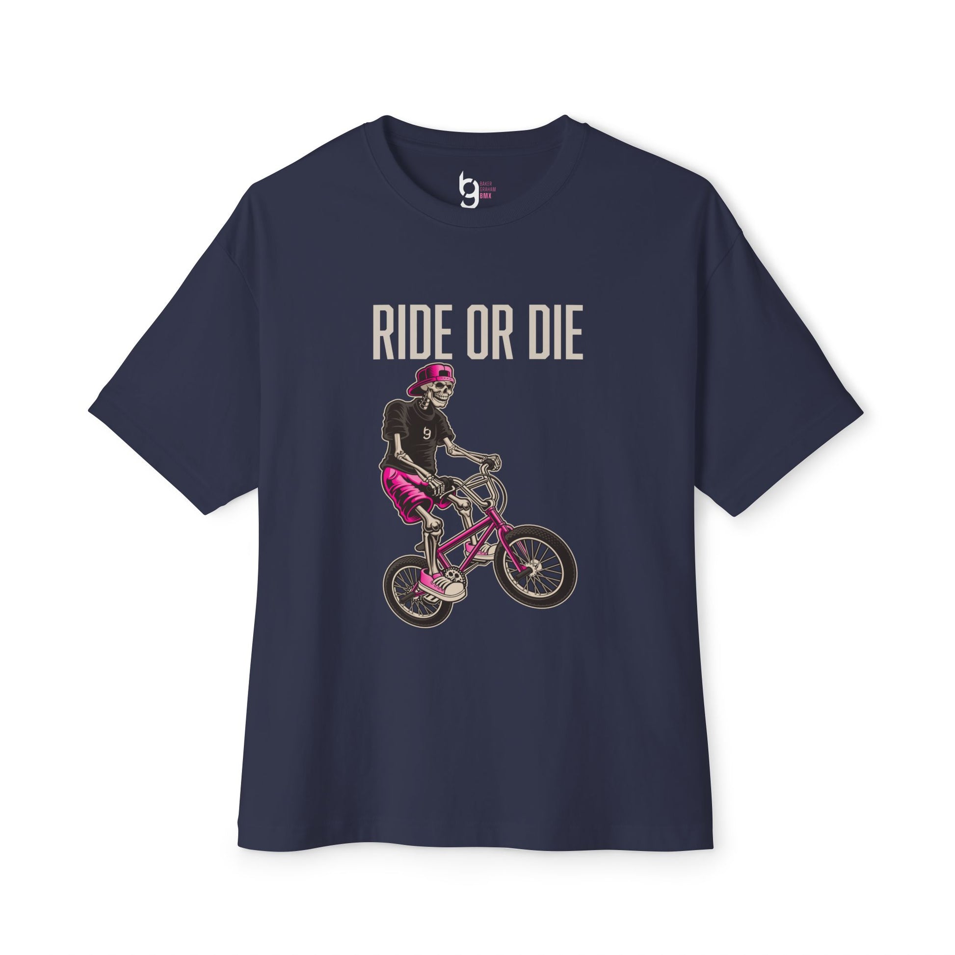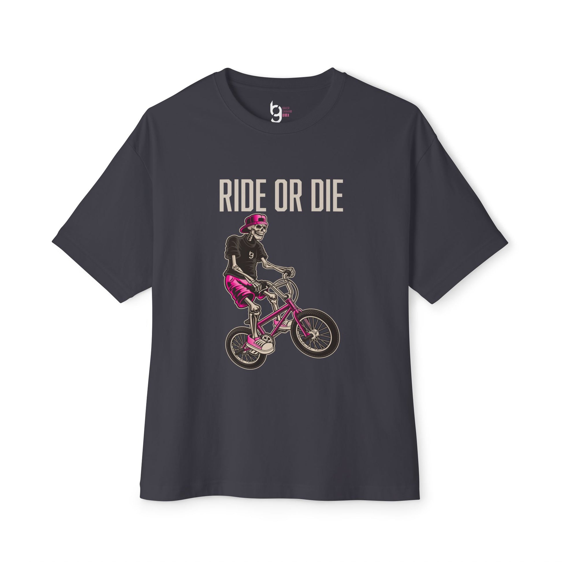 "Ride or Die" BMX Oversized Boxy Tee - Pink Graphic