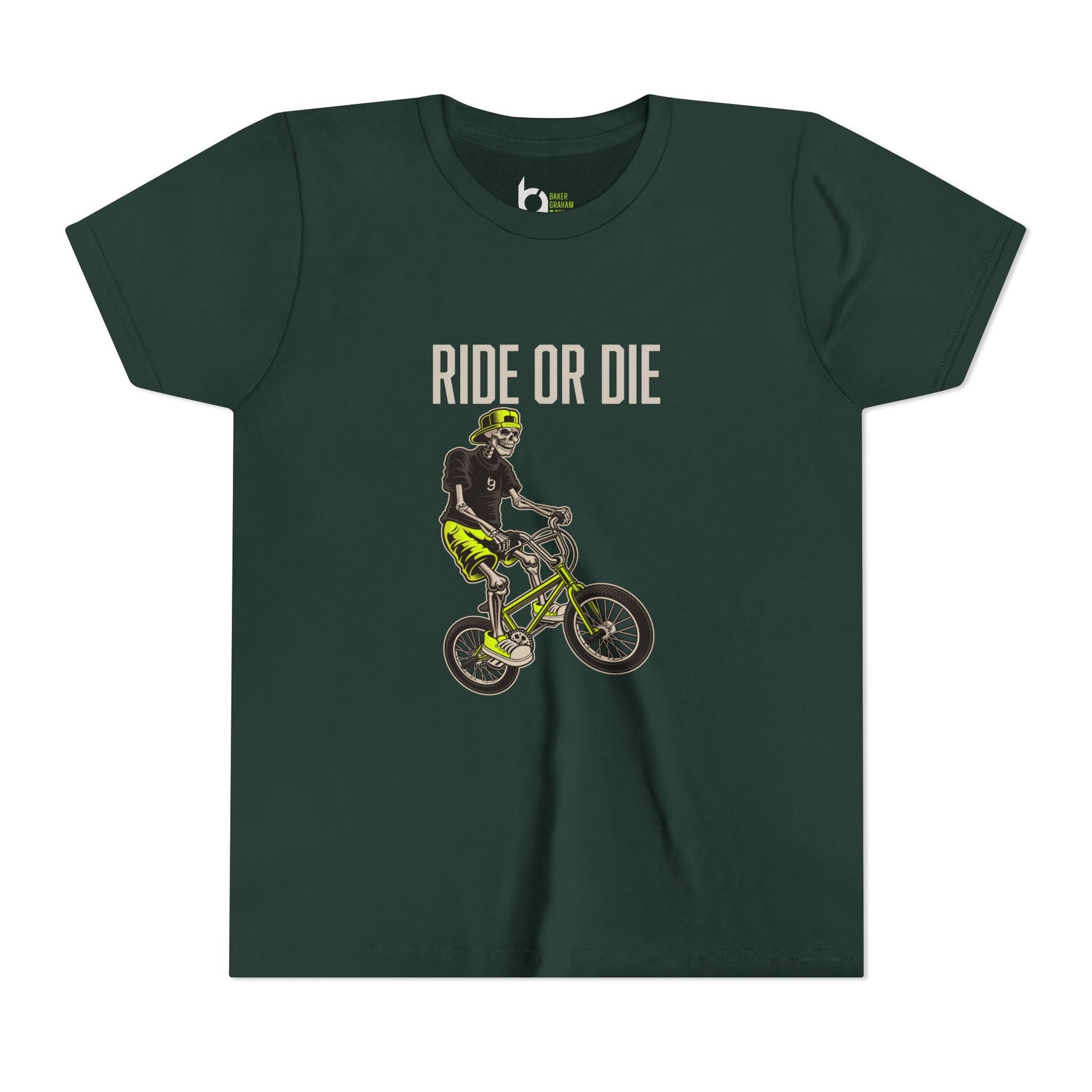 "Ride or Die" Kids Tee - Chartreuse Graphic
